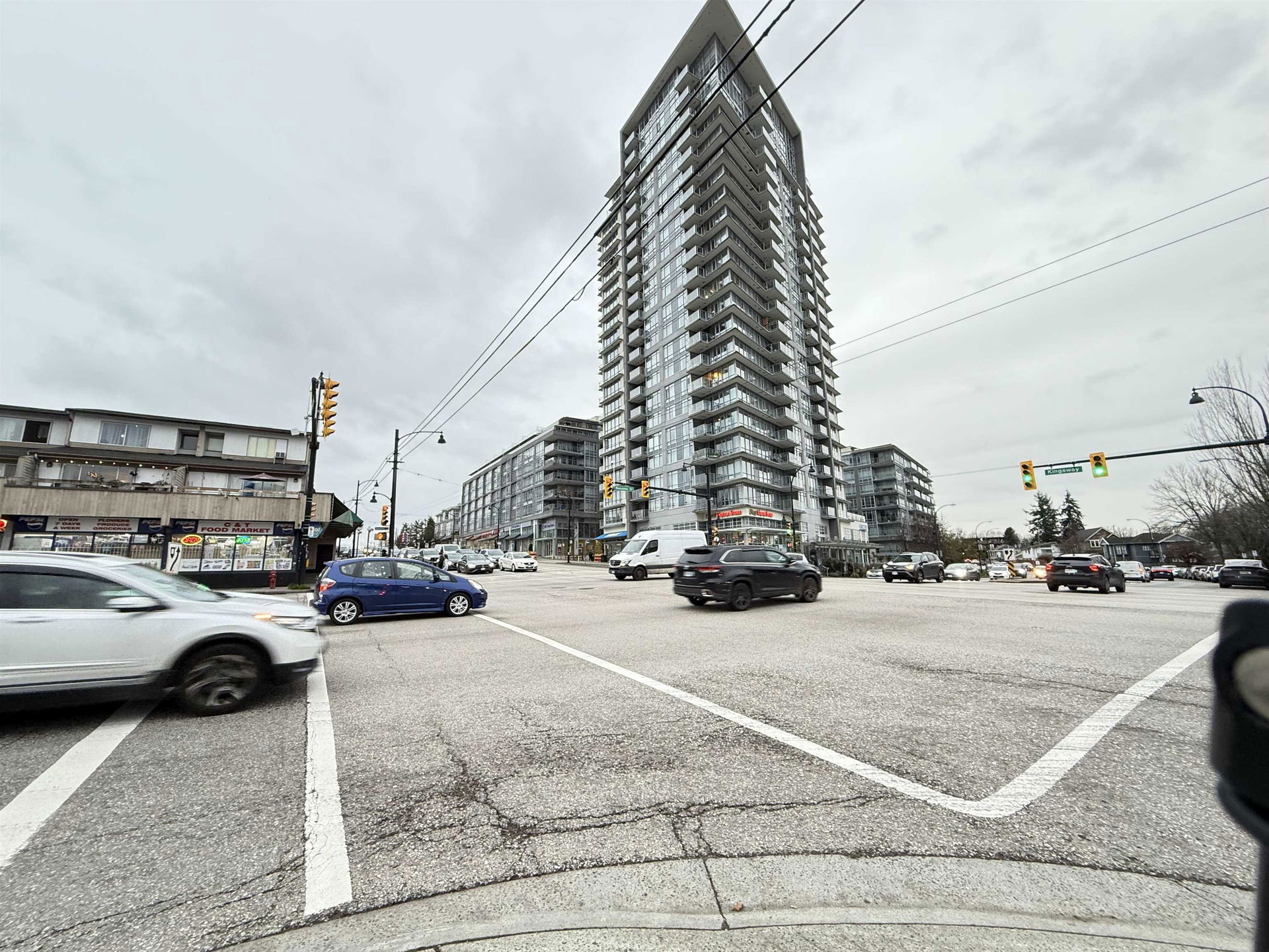 GREAT VALUE! Central location! Comer of Kingsway & Nanaimo – Eldorado. Bright corner unit with large balcony, very functional floor plan, 2 bedrooms+1 den+1 flex (currently use as a 3rd bedroom), facing the quiet side, spacious living room with large windows, bright and warm, open concept with granite countertops, GE S/S appliances, & laminate flooring. 2 level amenities with Exercise room, Party room and much more. Walking distance to Nanaimo Skytrain, T&T Supermarket, Shoppers Drug Mart downstairs, along with a bank, restaurants and many other shops! Bus stop at front to Metrotown, UBC and Downtown. 1 parking+1 locker. A must see, don’t miss out on this one! STILL AVAILABLE!
